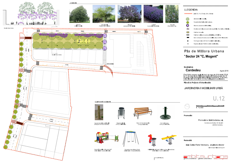 Redacción de Proyectos de urbanización de obra complementaria, acabados de pavimentación, jardineria y mobiliario urbano.